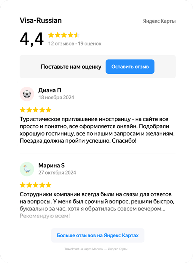 Мы можем выслать вам готовый ваучер по электронной почте. Оформление туристической визы в Россию возможно только в консульстве Российской Федерации за рубежом. Туристическое приглашение (ваучер) является основанием для её получения.